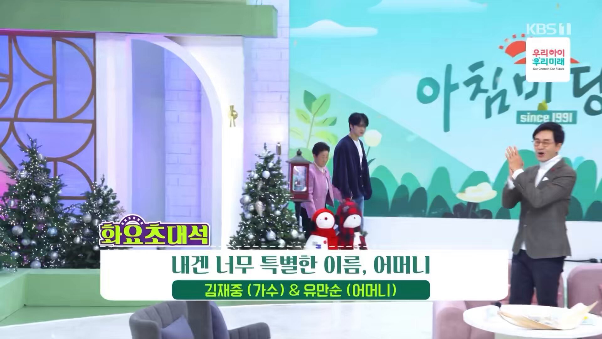 김재중은 "크리스마스 이브에 어머니와 함께 할 수 있어 영광스럽다"며 방송을 시작했고, 유만순 씨는 긴장한 모습이었지만 금세 생방송에 적응하여 유쾌한 분위기를 만들어냈습니다.유만순 씨는 김재중을 처음 만났던 순간을 회상하며, "그 아이가 나에게 '엄마'라고 부르며 안길 때 제 마음이 움직였다"고 말했습니다.