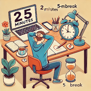 효율적인 시간 관리를 위해서는 적절한 휴식이 필요합니다. **포모도로 기법(Pomodoro Technique)**을 사용하여 25분 작업 후 5분 휴식을 취하는 방식을 실천해 보세요. 짧은 휴식을 통해 집중력을 유지하고, 장기적으로 더 높은 생산성을 발휘할 수 있습니다.