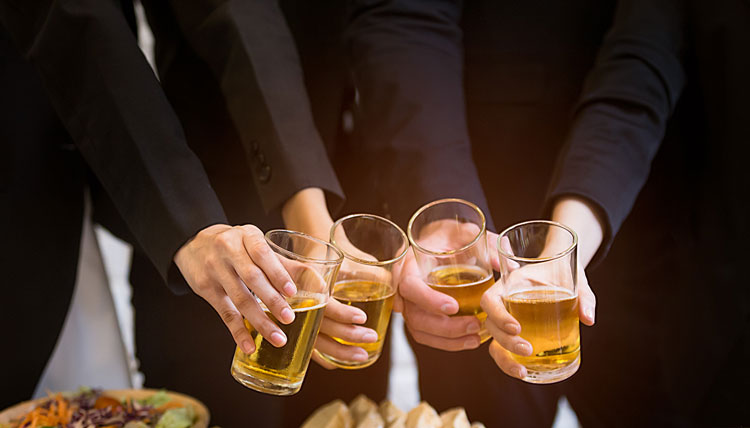 "우리 회사 직원들은 술을 마시면 일을 더 잘한다고 합니다. 그래서 오늘 밤, 우리 모두 내일의 생산성을 위해 열심히 마시겠습니다! 건배!"