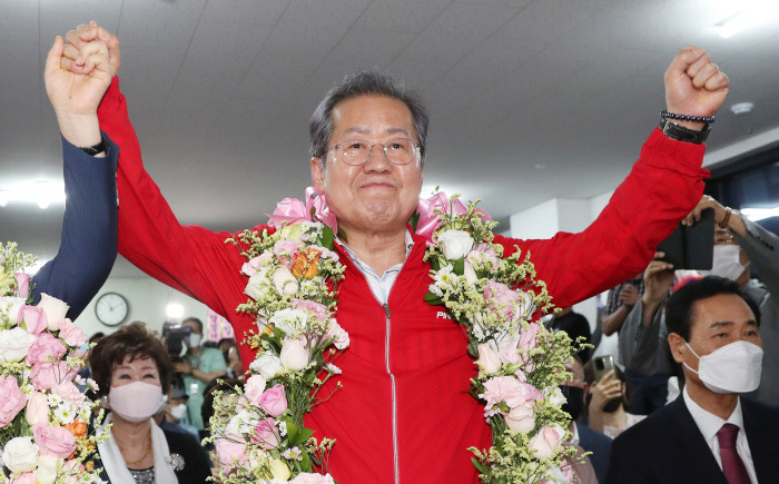 홍 시장은 두 차례 당 대표를 역임했으며, 박근혜 전 대통령 탄핵 후 치러진 19대 대선에서 자유한국당 후보로 출마해 문재인 대통령에 이어 득표율 2위를 기록했습니다.