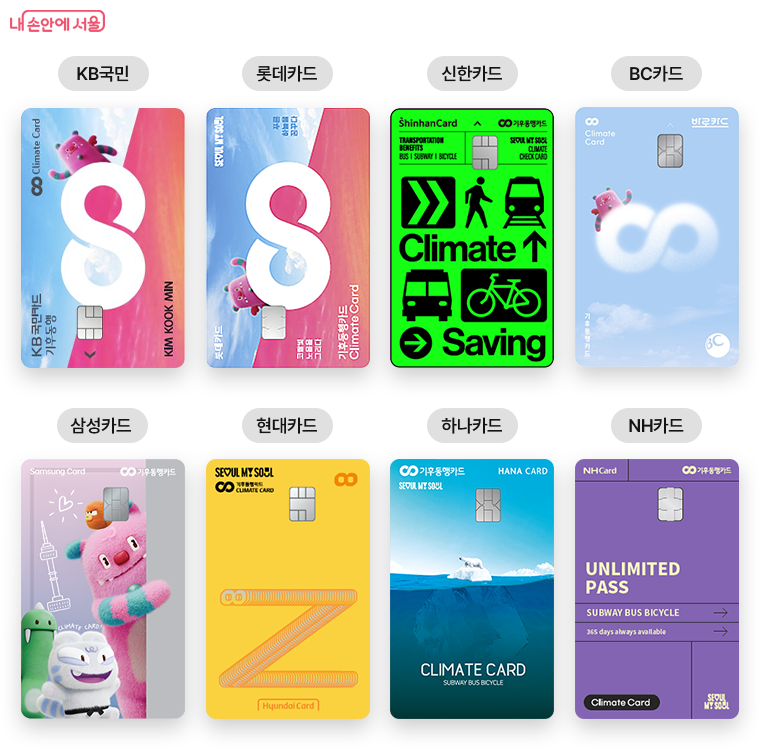 후불 기후동행카드는 신용카드 및 체크카드와 결합된 형태로, 각 신용카드사를 통해 발급받을 수 있습니다. 2024년 11월 25일부터 신한카드, KB국민카드, 롯데카드, 비씨카드(바로), 삼성카드, NH농협카드, 현대카드, 하나카드 등 8개 카드사를 통해 발급 신청이 가능합니다.